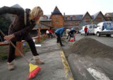 Alrededor de dos mil vecinos se congregaron en el Centro Cívico y limpiaron con palas, carretillas, escobas y escobillones la arena y cenizas volcánicas que cubrían las calles céntricas de la ciudad. El próximo fin de semana retomarán las tareas en los barrios del sur.