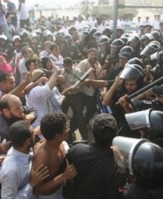 Al menos seis personas resultaron heridas en una pelea entre abogados del expresidente Hosni Mubarak y letrados de sus víctimas en la sala donde se celebra la tercera sesión del juicio contra el exlíder, acusado de corrupción, abuso de poder y de ser responsable de la muerte de más de 800 manifestantes. En tanto, el juez que preside el proceso en la Academia de la Policía de El Cairo ordenó un receso en la sesión como consecuencia de los incidentes.