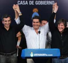 El gobernador de Chaco, Jorge Capitanich, celebró la reelección en su cargo con un agradecimiento al respaldo del gobierno nacional y un homenaje al ex presidente Néstor Kirchner, y resaltó que las proyecciones de las mesas testigos le daban una victoria con un caudal de votos "veinte mil por ciento" mayor que los obtenidos en 2007. "Los chaqueños nos votaron por los cambios que conseguimos, pero sobre todo por el futuro. Y el futuro los construimos con la Presidenta a partir del 10 de diciembre", subrayó el mandatario. Capitanich solicitó que no se especule con su candidatura presidencial en 2015, pero aclaró que buscará "promover a su sucesor para continuar el proyecto sin generar personalismos".