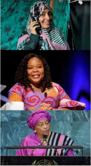 El reconocimiento compartido fue para la presidenta de Liberia, Ellen Johnson-Sirleaf, de 72 años y en campaña para su reelección; su compatriota Leymah Gbowee, de 39; y la joven periodista yemení Tawakkul Karman, de 32, quien dedicó el galardón al proceso social y político de reformas en los países árabes y de los cuales ella es una de las referentes de su país por ser presidenta de la asociación "Periodistas sin cadenas", que lucha contra el régimen. De las tres se destacó su "lucha pacífica por la seguridad de las mujeres y por el derecho de las mujeres de participar íntegramente en la obtención de la paz", señalaron los cinco miembros del comité noruego, quienes además definieron: "Hemos enviado una señal importante de que no puede haber democracia ni desarrollo pacífico sin la inclusión de las mujeres".