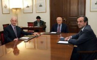 Durante la reunión convocada para establecer el nuevo gabinete transitorio, hasta celebrar elecciones anticipadas el 19 de febrero, el hasta ahora primer ministro Giorgos Papandreu, del socialista Pasok, y el líder del partido de centro-derecha Nueva Democracia, Antonis Samaras, pactaron que el exvicepresidente del Banco Central Europeo, Lucas Papademos, podría ser el nuevo premier de Grecia, encargado de conducir la negociación griega para su segundo rescate financiero.