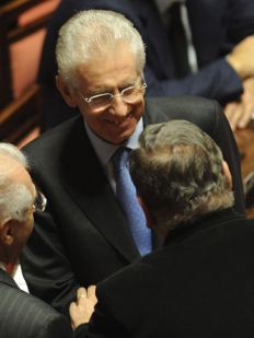 Monti, nombrado recientemente senador vitalicio por el presidente Giorgio Napolitano, estuvo hoy por primera vez en el Senado. El ex comisario europeo fue recibido con un fuerte aplauso por la Cámara.
