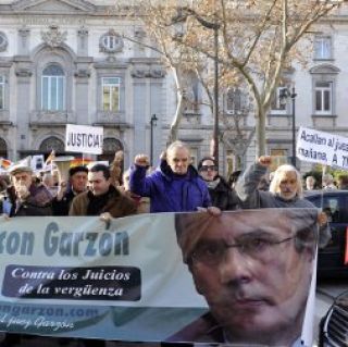 En la primera sesión del juicio, Garzón fue acompañado por varios jueces de la Audiencia Nacional y por organismos de derechos humanos como Amnistía Internacional, Human Rights Watch y la Comisión Internacional de Juristas, que acuden como observadores y califican como inaceptable el procesamiento del magistrado. El juez, reconocido también por haber desactivado redes de narcotráfico y procesado a numerosos miembros de ETA y políticos corruptos, se declaró competente para juzgar los crímenes del franquismo dos años después de recibir una demanda de varias asociaciones de víctimas. En su resolución, también autorizó la apertura de 19 fosas comunes en toda España, entre ellas la que se creía que estaban enterrados los restos del poeta Federico García Lorca.