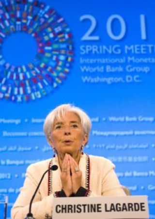 Durante los encuentros de primavera que realizan el Fondo Monetario Internacional y el Banco Mundial, la directora gerente de ese organismo, Christine Lagarde, pidió al gobierno de Barack Obama mantener "su tradición" e incrementar el desembolso habitual que esa potencia dedica al Fondo, y pidió a Grecia "implantar" nuevos ajustes, continuar con las "reformas pendientes" y apuntalar "la cuestión de recaudación fiscal". Además, pronosticó "nubes oscuras" en el horizonte de la economía europea, aunque no obstante le pronosticó un "viento de primavera" si continúa con las "reformas".