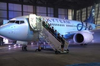 El acto de ingreso de Aerolíneas a la alianza aérea internacional se realizó en el nuevo hangar de Aerolíneas en el Aeroparque Jorge Newbery con la participación del CEO de SkyTeam, Michael Wisbrun, los CEOs de las compañías integrantes de la alianza, funcionarios, legisladores e invitados especiales.