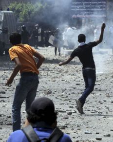 En El Cairo, Egipto, los manifestantes bloquearon las calles que llevan a la vecina plaza Tahrir, mientras las fuerzas de seguridad buscaban dispersas a los manifestantes. Hubo piedrazos y gases lacrimógenos y dos vehículos policiales fueron incendiados. En los enfrentamientos ocurridos durante la noche y hoy resultaron heridos 26 policías y unas 50 personas intoxicadas, mientras que doce manifestantes fueron detenidos.