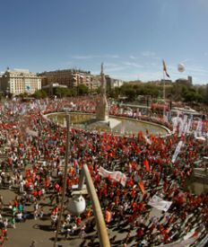 Bajo el lema “¡Vamos! ¡Quieren arruinar el país, hay que impedirlo!”, ayer los manifestantes, convocados por unas 200 organizaciones sociales y los principales sindicatos de España, pidieron un cambio de rumbo al gobierno. En el discurso final de la manifestación, Méndez y Toxo exhortaron a Rajoy a que atienda sus apelaciones y convoque un referéndum sobre las medidas adoptadas.