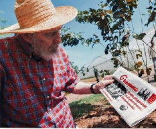 En las nueve fotografías, que publicó el portal oficialista Cubadebate (cubadebate.cu), Castro, retirado del poder desde 2006 por una crisis de salud, aparece con buen semblante en un campo de cultivo, vistiendo camisa oscura a cuadros, pantalón deportivo y sombrero típico de campesino cubano, tejido con fibra de yarey. Varias instantáneas lo muestran apoyándose en un bastón para caminar, mientras conversa con sus interlocutores o lee la edición del viernes del diario oficial Granma.