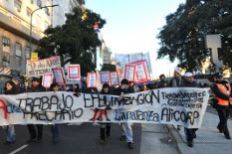 Más temprano, trabajadores de la empresa Alicorp (ex Jabón Federal) habían realizado un corte sobre avenida Corrientes y Carlos Pellegrini en reclamo de la reincorporación de empleados despedidos por esa firma y en rechazo a la "precarización laboral". La protesta interrumpió el carril exclusivo inaugurado ayer por el gobierno porteño para agilizar el tránsito en la 9 de Julio.El reclamo tuvo como epicentro la sede de la consultora Adecco, ubicada en Carlos Pellegrini 855, y debido a la persistencia del corte la Gendarmería se movilizó hasta allí. Encabezados por el secretario de Seguridad, Sergio Berni, los agentes dispusieron un fuerte operativo y se intimó a los manifestantes a dejar el lugar.