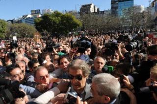 Por su parte, el CEO de Clarín se retiró del edificio rodeado de sus custodia personal y efectivos de la Policía Federal, que lo acompañaron hasta abordar su vehículo, en medio de abucheos de los manifestantes que le gritaban "asesino".