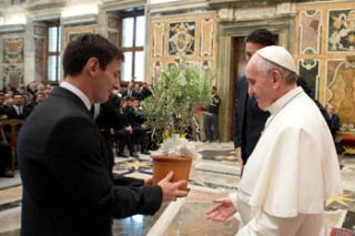 Durante 15 minutos, el papa argentino recibió a los jugadores de Argentina e Italia, que mantendrán un amistoso en Roma. El astro del equipo nacional Lionel Messi le obsequió una planta de olivos y manifestó su "orgullo" por conocerlo, mientras que el titular de la AFA, Julio Grondona, le pidió "que ayude a calmar" los hechos de violencia en el fúbtol. Jorge Bergoglio les dijo que, por ser figuras internacionales, "tienen una responsabilidad social" y considero que "en el fútbol no debe haber lugar para el individualismo".