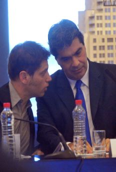 Ambos ministros estuvieron flanqueados por los titulares de las carteras del Interior, Florencio Randazzo; de Industria, Debora Giorgi; de Planificación, Julio De Vido; y de Trabajo, Carlos Tomada; los secretarios de Comercio, Augusto Costa; de Obras Públicas, José López; de Minería, Jorge Mayoral; y de Comunicación Publica, Alfredo Scoccimarro.