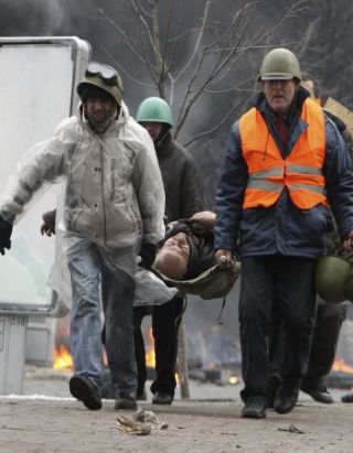 Disparos de bala y explosiones desde la mañana pusieron fin al cese del fuego acordado ayer entre los líderes opositores y el presidente Viktor Yanukovich, y dejaron 39 muertos en las calles de la capital. Por el nuevo brote de violencia renunció al partido gobernante el alcalde de Kiev, Vladimir Makéyenko, quien convocó a funcionarios y legisladores a ponerse como "escudos humanos" entre los manifestantes y las fuerzas de seguridad.