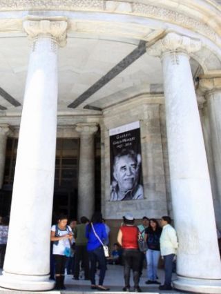 Miles de personas hicieron fila bajo el sol para entrar en el Palacio de Bellas Artes de México a despedirse del escritor colombiano, cuyas cenizas se colocaron en el vestíbulo principal para las guardias de honor. Los restos de García Márquez llegaron acompañados por un cortejo desde su casa en el Distrito Federal. Se esperan las palabras del presidente mexicano, Enrique Peña Nieto, y su par colombiano, Juan Manuel Santos.