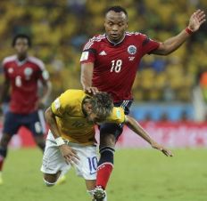 En los cuartos de final del Mundial que Brasil ganó 2-1 a Colombia, Neymar recibió un rodillazo en la espalda por parte de Zúñiga que le originó una fractura en la tercera vértebra lumbar, a raíz de lo cual quedó fuera del certamen.