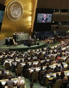 Durante su discurso ante el plenario de líderes mundiales reunidos en Nueva York, Ban hizo un llamamiento a la paz y advirtió que los derechos humanos son "atacados" en todo el mundo, enumerando los conflictos y crisis de Siria e Irak, Gaza, Ucrania, Sudán del Sur y República Centroafricana, entre otros.