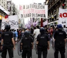Trabajadores de la empresa autopartista se concentraron frente al Obelisco porteño para reclamar la reincorporación de 330 operarios suspendidos por tiempo indeterminado y de otros 110 despedidos de la planta de General Pacheco.