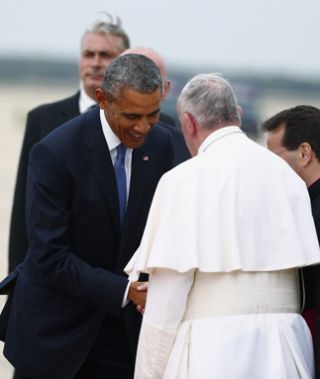 El presidente Barack Obama junto a su esposa e hijas caminaron por la pista de la base área de Maryland para recibir al Papa, a quien también le dieron la bienvenida unos mil invitados de la Arquidiócesis de Washington y las Fuerzas Armadas. "Se ve, se siente, el Papa está presente", entonaron en español para saludarlo. Francisco cerró pocas horas antes su primera visita a Cuba con un acto religioso en el santuario de la Virgen de la Caridad del Cobre.