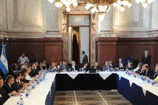 En el plenario de las comisiones de Presupuesto y de Economía del Senado, los senadores escucharon los reiterados pedidos de los mandatarios provinciales para avanzar en el acuerdo con los fondos buitre, bajo las condiciones impuestas por el juez de Nueva York Thomas Griesa, con el argumento de que permitirá acceder al crédito internacional para hacer frente a las deudas en sus provincias y adelantando un próximo debate por la ley de coparticipación federal.