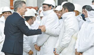 La ceremonia se realizó en Cresta Roja para “celebrar” la reincorporación de 1300 trabajadores de la avícola, el principal anuncio referido al empleo desde que asumió Macri. En el momento del acto la planta estaba de paro por conflictos gremiales (ver página 4). Para asegurar el orden y evitar eventuales protestas, el complejo industrial ubicado en el partido bonaerense de Esteban Echeverría amaneció prácticamente militarizado.