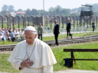El papa Francisco visitó durante casi una hora el campo de exterminio nazi de y, tras saludar a once sobrevivientes del lugar, pidió "perdón por tanta crueldad". Apenas pasadas las 09.15 locales (04.15 de Argentina), el pontífice avanzó por el callejón de tierra que hace de camino de ingreso y atravesó el tristemente célebre letrero de "Arbeit Macht Frei" ("El trabajo libera"), por donde pasaron más de un millón de prisioneros nazis durante la segunda guerra mundial.