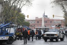 Los choferes estacionaron una quincena de grúas de las empresas STO y CEC prácticamente sobre las aceras de ambas manos de avenida de Mayo, a la altura de Bolívar, frente al Gobierno de la Ciudad, y se fueron, dejándolas abandonadas allí.