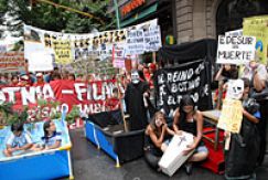 Asambleístas de Gualeguaychú y asambleas vecinales porteñas realizaron manifestación y una original puesta visual en las cercanías de la embajada del país de origen de la pastera Botnia.