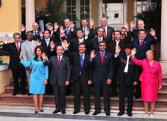 Los jefes de Estado y de Gobierno que integran el Grupo de Río se sacaron la tradicional foto que los muestra a todos juntos, en el marco de la vigésima cumbre que hoy tiene lugar en Santo Domingo, capital de República Dominicana.