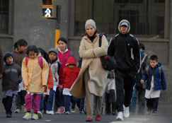 Los chicos llegan bien abrigados al colegio.