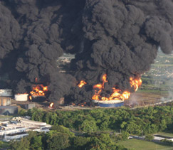 15 tanques de almacenamiento de combustible de la compañía Caribbean Petroleum se incendiaron en la capital puertorriqueña, y la extensa nube de humo negra provocada por la explosión determinó el desalojo de las zonas residenciales cercanas a la refinería.
