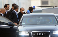 El primer ministro al salir del hospital San Raffaele en Milán el 17 de diciembre.