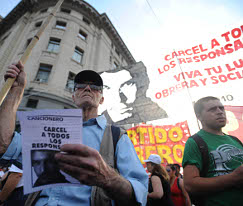 "Las responsabilidades del crimen llegan mucho más lejos que las siete detenciones", rezaba el documento que leyeron los manifestantes.