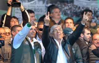 Durante una concentración de Camioneros en el Parque Roca, que el mismo titular de la CGT desmintió que fuera una respuesta a la convocatoria del kirchnerismo de mañana en Vélez, Hugo Moyano ratificó su postulación a la reelección en julio próximo “para seguir defendiendo los intereses de los trabajadores” y, sin dar nombres, criticó a los dirigentes "que salieron del sarcófago" y propician su desplazamiento de la central obrera "al amparo de los funcionarios de turno". Luego de confirmar el acuerdo alcanzado con el gobierno porteño, que indemnizará a los recolectores de basura despedidos a raíz del cambio de las concesiones, reclamó al Ejecutivo nacional que “elimine de una vez por todas ese perverso impuesto al trabajo, mal llamado mínimo no imponible”, pidió que se aumente el tope para las asignaciones familiares, exigió que “devuelva a las obras sociales los 16 mil millones de pesos de los trabajadrores” y reiteró que su gremio negociará paritarias “con los porcentajes del supermercado”.