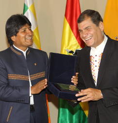 El presidente de Ecuador se reunió en Cochabamba con su par boliviano Evo Morales. Estaba prevista también la presencia del venezolano Nicolás Maduro, quien canceló su viaje por una gripe. Correa dijo que existe "una reconstitución de la derecha en el continente" y citó el caso de la Alianza del Pacífico como ejemplo.