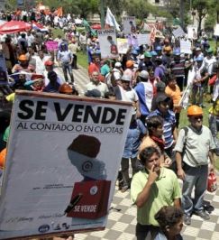 Miles de trabajadores salieron a las calles en las principales ciudades del país para protestar contra las privatizaciones propuestas por el gobierno de Horacio Cartes. El exmandatario y actual senador Fernando Lugo denunció que "con la ley de 'Promoción de la inversión en infraestructura pública y ampliación y mejoramiento de los bienes y servicios a cargo del Estado' todos van a pagar para que sólo unos pocos se enriquezcan".