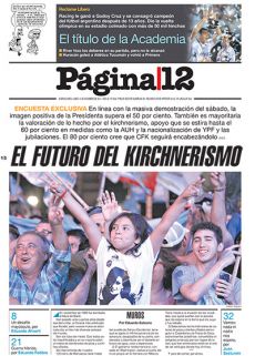 ENCUESTA EXCLUSIVA En línea con la masiva demostración del sábado, la imagen positiva de la Presidenta supera el 50 por ciento. También es mayoritaria la valoración de lo hecho por el kirchnerismo, apoyo que se estira hasta el 60 por ciento en medidas como la AUH y la nacionalización de YPF y las jubilaciones. El 80 por ciento cree que CFK seguirá encabezándolo