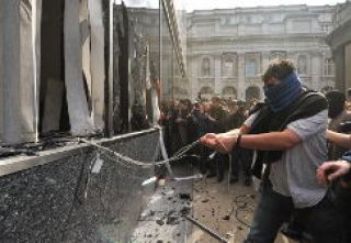 Miles de activistas se congregaron en el centro de Londres para protestar contra la cumbre del G20 de mañana, y un grupo trató de irrumpir en el banco de Inglaterra, lanzó huevos y frutas a la policía e intentó superar el vallado de seguridad.