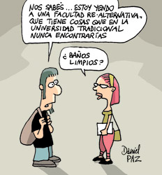 En su versión porteña, la institución funcionará en el espacio cultural Oeste, en el Mercado del Progreso, en Primera Junta. Para anotarse no hacen falta más requisitos que ser mayor de 17 años, saber leer y escribir y pagar un arancel de 120 pesos por mes. Desde el 15 de mayo, en esta primera etapa se podrá tomar el curso Fe de Erratas (los equívocos de la travesía nacional), a cargo de Luis Frontera. “La tragedia argentina es de carácter sexual y nace con la llegada de los conquistadores”, adelantó el profesor y agregó que “las clases están planteadas sobre una relación horizontal de ida y vuelta”. También se podrá optar por el curso Periodistas y Maestros: las encrucijadas de la comunicación contemporánea, de Miguel Wiñazki y Claudia Romero. Los cursos durarán doce clases con un frecuencia semanal. En Rosario, donde la Facultad ya lleva seis años, las áreas están divididas en Política y ciudadanía, Arte y sociedad, Filosofía y calidad de vida, Comunicación y gestión y Educación e identidad.