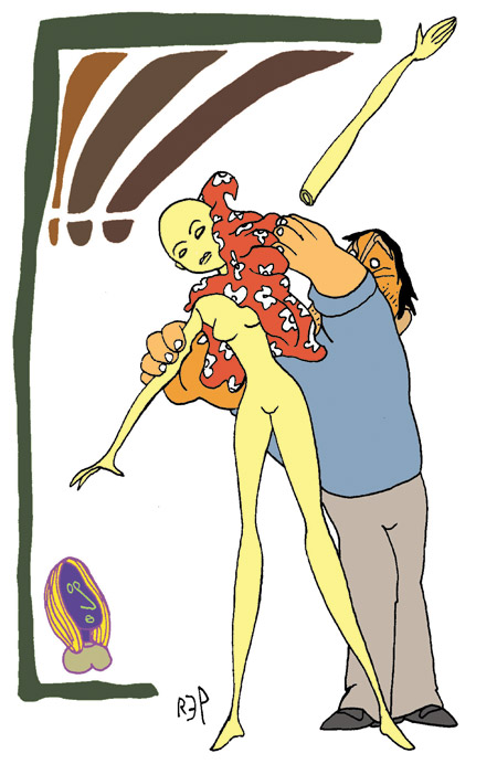 Jota me atrae hacia una vidriera con un maniquí de piernas inmensamente largas, tiene puesto un vestido floreado. Detrás se ve una cortina corrediza y accesorios de tocador. Están a punto de cerrar la tienda. El entra resuelto, da algún tipo de explicación, se asoma para ver si lo sigo, pronuncia mi nombre, quiere hacerme participar de su victoria. Yo permanezco en la vereda mirando.