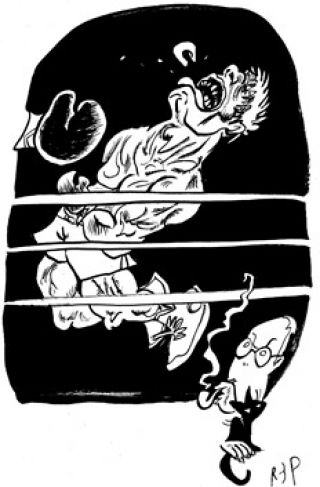 Donald Poynton, el protagonista de mi relato, aparece fugazmente en un par de escenas de Tulip, trabajando con su mujer, Linda, en la casa donde un Hammett acosado por Mac Carthy y el fisco, vive de prestado. El dato de que fue boxeador con el nombre de Donny Brown en Filadelfia está en Hammett. El resto es pura invención. Invención mía, quiero decir. Como la acción en mi novela transcurre en el comienzo de la primavera del 53, la vinculación de Poynton con nuestro José María Gatica y su viaje a los USA para pelear con Ike Williams —tremenda derrota del Mono— me pareció factible y atractiva. Todo lo del Shadows, los Lomuto y la escuela de sparrings corre por mi cuenta y riesgo.