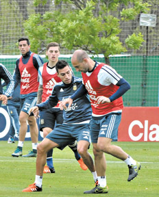 Biglia, en tanto, fue sometido a tratamiento kinésico y estudios por dolores en la región inguinal izquierda, y está en duda para el martes. El volante de la Lazio no entrenó ayer con el resto de los jugadores titulares que hicieron trabajos regenerativos, y ante Paraguay sería reemplazado por Matías Kranevitter. Roberto Pereyra, con una molestia en el rotador de la cadera, tampoco hizo fútbol a la par del resto de los jugadores.