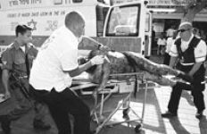 Uno de los heridos es trasladado en el mercado de Netanya.