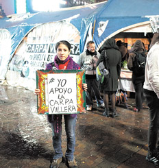 “En un mes solo vinieron tres personas relacionadas al gobierno de Macri: dos paramédicos, porque se descompusieron unos compañeros, y un policía de la Metropolitana, que como vive en una villa firmó el petitorio y dijo que estaba con la causa”, comenta con ironía Dora Macoviak, de la Villa 31 bis. “Para ellos, nosotros no existimos porque somos villeros”, agregó. El balance de la mayoría de los hombres y mujeres que participan de la protesta que el 21 de abril los llevó a instalarse en el epicentro de la ciudad es unánime: “No hay respuestas”, dicen. Un representante de La Poderosa, la organización de la Villa 31, afirmó: “En ningún momento nadie del gobierno se acercó para ver cómo estábamos o ni siquiera para sacarnos”.