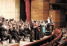 Alejo Pérez consiguió, mucho más allá de la virtud que implica el solo hecho de hacerla posible, una versión musicalmente coherente, unida en sus relaciones temáticas, detallada en sus múltiples juegos de espejos, intensa y expresiva. La condición narrativa dramática –aunque desde ya no argumental– de la obra, con sus clímax, sus postergaciones y sus explosiones fue sostenida con concentración extrema. La orquesta, más allá de algún traspié en la trompeta solista y algún fraseo poco agraciado en los cornos, tuvo una actuación excelente y se destacaron el solo de violín, las cuerdas notablemente homogéneas y una muy buena fila de maderas. El adagio que abre la segunda parte, con un exquisito fragmento para arpa y violines solos, fue, en ese sentido, impecable. También los coros: el Estable preparado por Miguel Martínez, el de Niños, que conduce Mónica Dagorret, y el Polifónico Nacional, que dirige Roberto Luvini, también tuvieron actuaciones destacadas (el pianísimo a capella cercano al final fue magnífico).