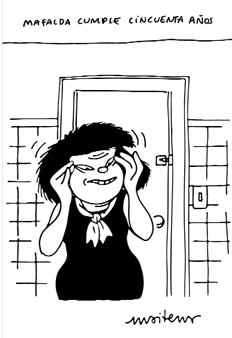 Esa chica algo sobreactuada, protestona y cascarrabias decía que al globo terráqueo “le dolía el Asia”, o que los cactus eran el monumento a la situación internacional, mientras rezaba al cielo “que no haya muerto el pájaro loco” cada vez que escuchaba noticias de último momento. Es que Quino logró emocionar, intrigar, reír y hacer esperar con apuro la salida del próximo número desde el lugar menos imaginado: el tópico gris de lo cotidiano en un mundo de clase media. Ahí también, entre muchas otras cosas, radica la genialidad del asunto. Es mérito inmenso provocar grandes desenlaces cuando se escriben globitos sobre la sopa, los precios del almacén, el cuelgue infantil, los juegos de muñecas, el chupete o la batalla desigual contra las hormigas. Lástima que nunca rescataron de la cocina a la madre de Mafalda. Esta (se) preguntaba “si cuando mi mamá era chica querría ser lo que es ahora” y “¿Qué te gustaría ser si vivieras?”. Había acidez en lo dicho pero también era la cristalización de un modo-madre contemporáneo del que aún hoy siguen editorializando las revistas “femeninas”. Mafalda pisó poco y nada la cocina, siempre ubicada en el living, la vereda o la plaza. Desde esos anillos de poder, ella, Felipe, Susanita, Manolito, Miguel, Libertad y a veces Guille, entendían que la contracción al deber y al estudio era “la peor alegría” que pudieran obsequiarles. Volaban con Los Beatles. A mediados de 1974, en la disquería Tocata y Fuga, de Santa Fe y Larrea, no cabía un alfiler (ningún motivo en particular. O sí). Las pibas querían Help!, por “Yesterday”, desde ya, pero también para compartir por qué Mafalda solía pedirle a la maestra de música que en vez de enseñarles himnos les tocara una de McCartney. El día que murió Perón, en la escuela Bernardino Rivadavia, primaria de jornada completa, una chica de quinto grado apoyó los brazos en el pupitre y sobre ellos ocultó el rostro contraído por la pena. Las que la rodeaban fueron imitando ese movimiento con lentitud, en una inclinación de cabezas colectiva, para curiosear mejor en aquel mar de lágrimas. La cara no dejó verse, pero debajo del mueble escondía una revista de Mafalda. Estaba prohibido llevar material ajeno a la currícula educativa, pero la gravedad del acontecimiento superaba el acto transgresor. En medio de la consternación alguien, una fanática del momento sin duda, le preguntó si mientras tanto, hasta que calmara el llanto y la tristeza, se la prestaba un rato, nomás.