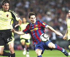 Con un tanto de Lionel Messi, el Barcelona venció 6-1 al Zaragoza y se afirmó en lo más alto de la tabla de posiciones. Con tres goles de Seydou Keita, dos de Zlatan Ibrahimovic y otro del argentino, el quinto de la cuenta, el conjunto de Pep Guardiola se alejó del Real Madrid, que el sábado empató sin goles ante el Gijón. La Coruña perdió 4-0 con Valladolid y también se alejó de las principales posiciones. En otro de los encuentros de la octava jornada, Getafe, con Daniel DÃaz y Oscar Ustari, venció al Bilbao y obtuvo su cuarta victoria en lo que va de la Liga de España.