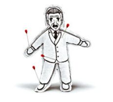 De hecho, se llaman “Vudúcratas” y su fabricante, Alberto Nava, los puso a la venta a unos 10 dólares cada uno. Tienen los rostros de los políticos que aspiran al gobierno y vienen con un kit compuesto de agujas y un instructivo que señala los mejores lugares para clavarlas. Una aguja en el ojo izquierdo hace que el candidato se vuelva más transparente; una en el corazón es un reclamo de honestidad y una en la mano derecha vale para el sentido común. “Es como acupuntura a larga distancia”, dijo Nava.