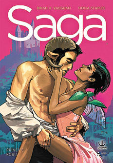 Más allá de la hipérbole, los éxitos de venta (vende más que The Walking Dead, el cómic que originó la serie zombie sensación de la TV) y todos los premios posibles del medio que ha ganado, Saga es algo decididamente distinto en el panorama no solo de los cómics, sino de la ciencia ficción y hasta de los relatos contemporáneos, donde podemos incluir la fiebre de las series. No por nada su guionista, Vaughan, la ha definido como “Star Wars para perversos”. Aunque, nobleza obliga, preguntó casi inmediatamente después de esa declaración: “¿Puedo anular esa definición?” Lo cierto es que esa definición, o “Star Wars cruzado con Game of Thrones” u otras como “El señor de los anillos no apto para menores de 18 años pero con naves espaciales y magia” no terminan de hacer justicia al espectáculo sentido, adictivo y único que viene siendo Saga desde su primer numero, publicado en 2012.