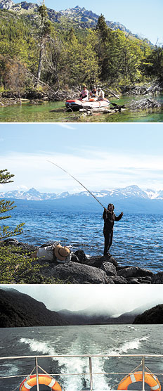 EN EL PARQUE NACIONAL LAGO PUELO Las aguas azul verdosas –y por momentos turquesas– del lago Puelo están custodiadas por el Cerro Tres Picos de 2650 metros y nieves eternas. Aquí se encuentran truchas Arcoiris (de no más de 2 ó 2,5 kilos), Marrones, Percas (una especie autóctona) y Peladillas (un tipo de pejerrey).