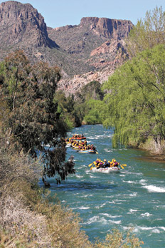 El pueblo de Rodeo está a cinco kilómetros del dique y desde allí se organizan salidas de mountain bike, cabalgatas, paseos en 4x4, trekking y bajadas de rafting por el río Jáchal.